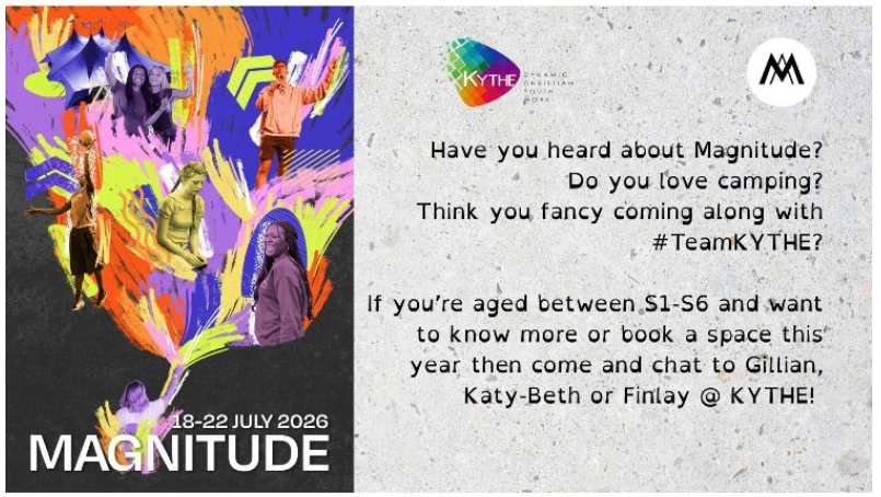 Magnitude 2026 02 Apr 2026 Magnitude 2026 (in association with SU Scotland) is coming to Lendrick Muir 18 - 22 July.